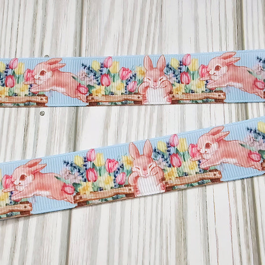 Spring Bunny & Flowers Grosgrain Ribbon