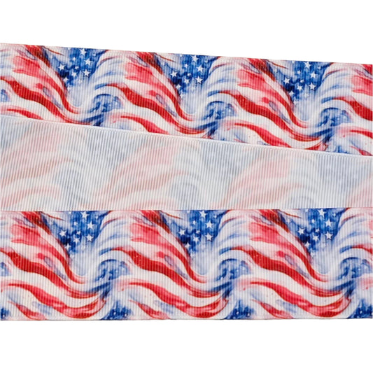 Watercolor Patriotic Flag Grosgrain Ribbon